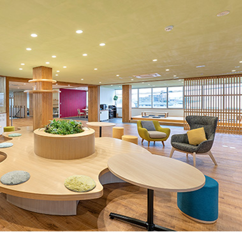創業100年を超える会社である一方、「新たな100年を作っていこう」と、フリーアドレス制や新人事制度の導入など、社員が活躍しやすい環境づくりにも力を入れています。