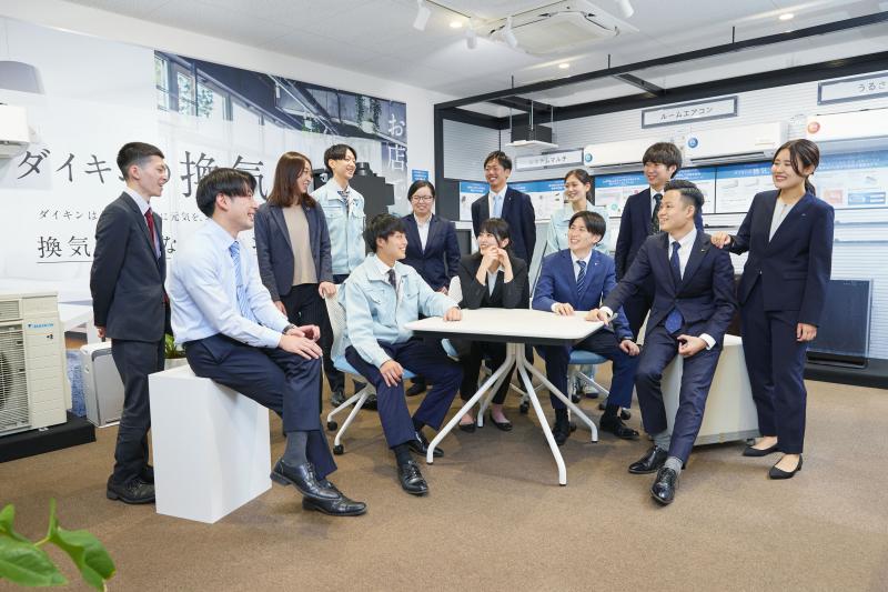 技術職は当社の製品をより良く設置して頂けるよう、技術面からサポートしていくのが仕事です。営業職は技術グループ(設計チーム、施工チーム)や販売推進と常に情報共有し、連携を取って、お客様に最善の提案をし、設置・施工・フォローまでトータルに担っていきます。個々が高い志とプロ意識を持って、日々、知識を身に付け、技術を磨く。そして連携しあって「いい仕事」「お客様に喜ばれる仕事」を生み出す。チームワークの良さは当社の自慢のひとつです。