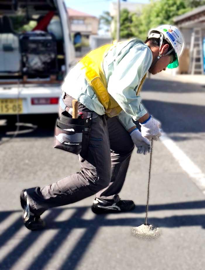 地下埋設物探査やその修繕、道路整備、漏水調査及び測量等、ひとつひとつの仕事を積み重ね、安全安心かつ快適な暮らしのできる社会へと[未来へつなぐ]役割を果たすべき成長しつづけています。